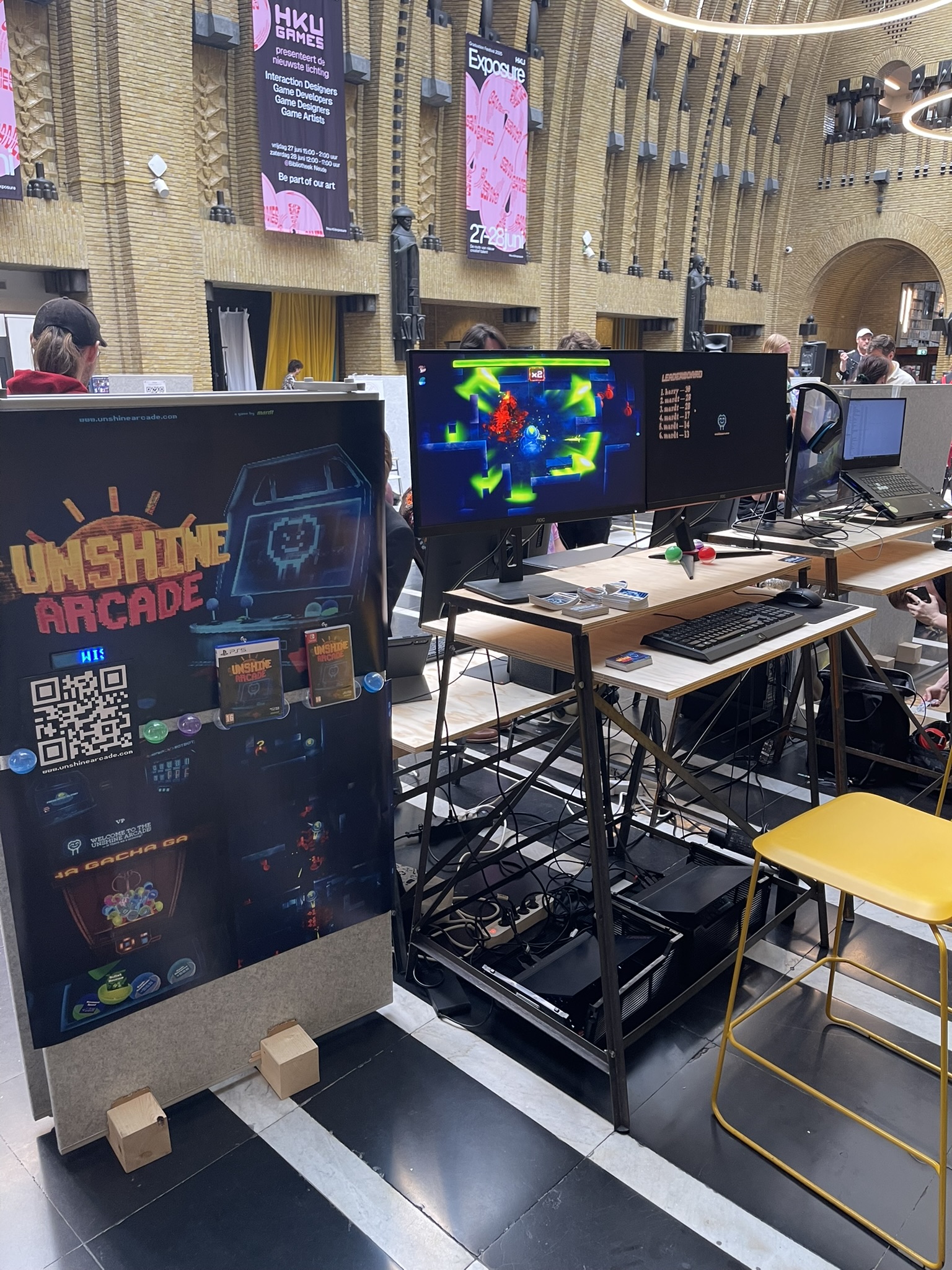 All my life, I’ve dreamed of making my own video games. When I first opened Unity at twelve, its complexity overwhelmed me and I gave up. Thirteen years and dozens of prototypes later, after thousands of hours of blood, sweat, and tears, my first proper release is finally becoming a reality. Along the way, I honed my skills through game jams, school projects, and a formative internship at Triangle Studios where I studied under senior Technical Artist Wessel van der Es, who taught me how to take on much bigger technical challenges. One standout collaboration with another game developer Luc Blasse, was Library of Hex. An experimental word-combat game where your “health” is letters and you battle sentient books. Originating from the Global Game Jam 2022, it earned Best Game at the Utrecht School of Arts. We spent the next year refining it, learning firsthand the challenges of scope, design, and limited resources—and discovering what it really takes to launch an indie title. As my creative vision and ambition evolved, I realized it was time to strike out on my own. Now, I’m proud to be developing UNSHINE ARCADE, a passion project that brings together everything I’ve learned and all the excitement that first drew me to game development. Read more about UNSHINE ARCADE down here: